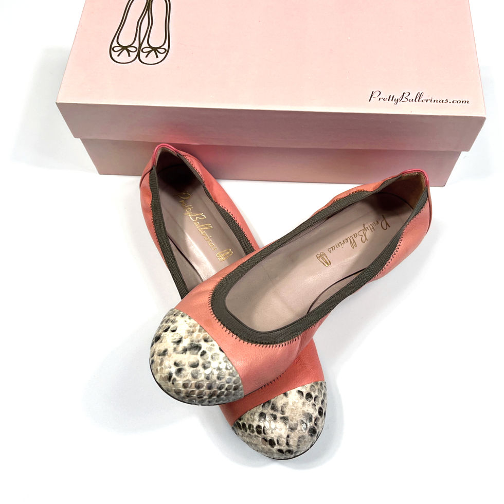 altrosefarbenes Leder mit Snake-Print auf der Kappe